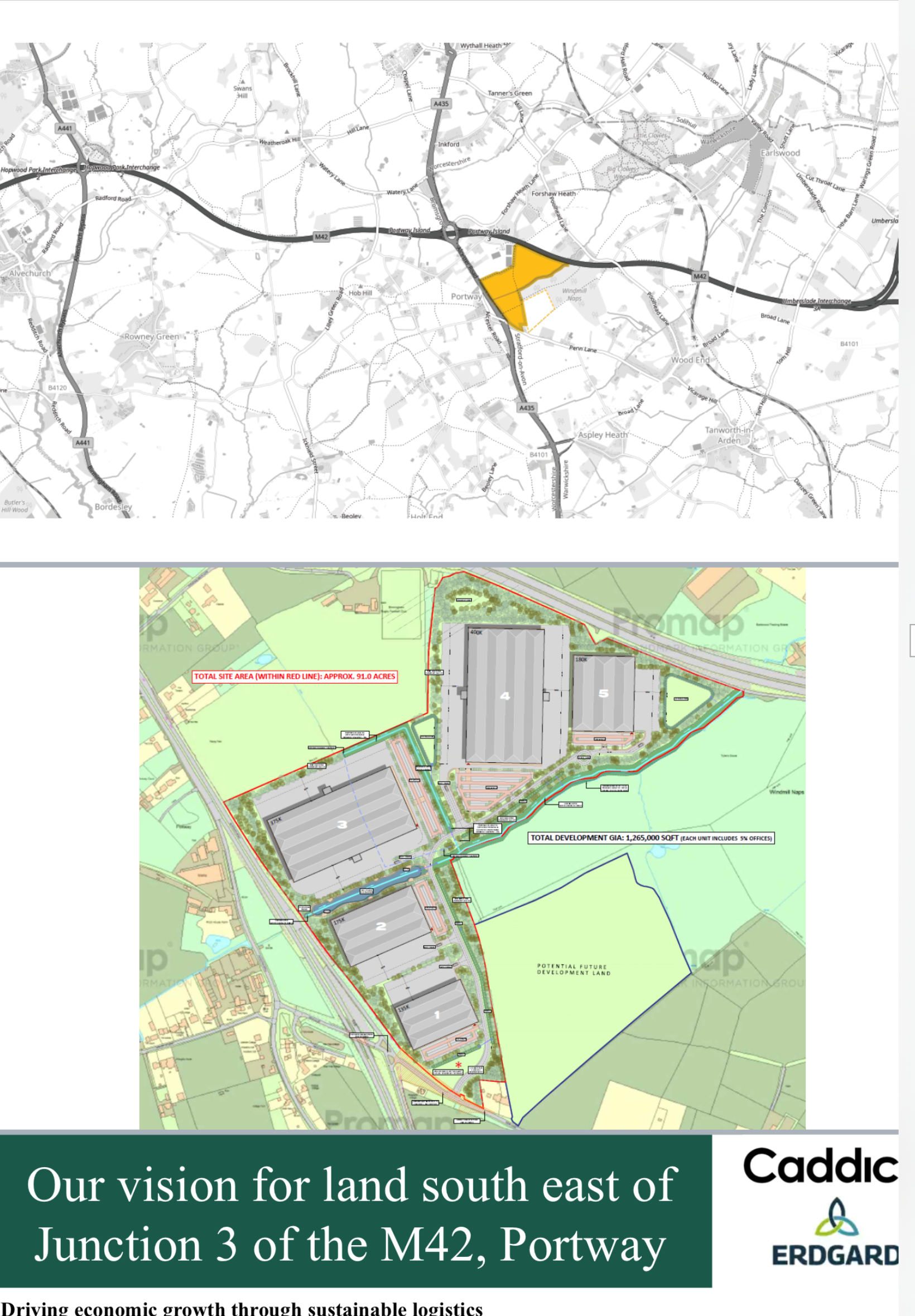Representatives from Caddick Group and Erdgard Developments have made a presentation to Tanworth Parish Council in advance of an application to build a large industrial site on land to the south east of Junction 3 of the M42.